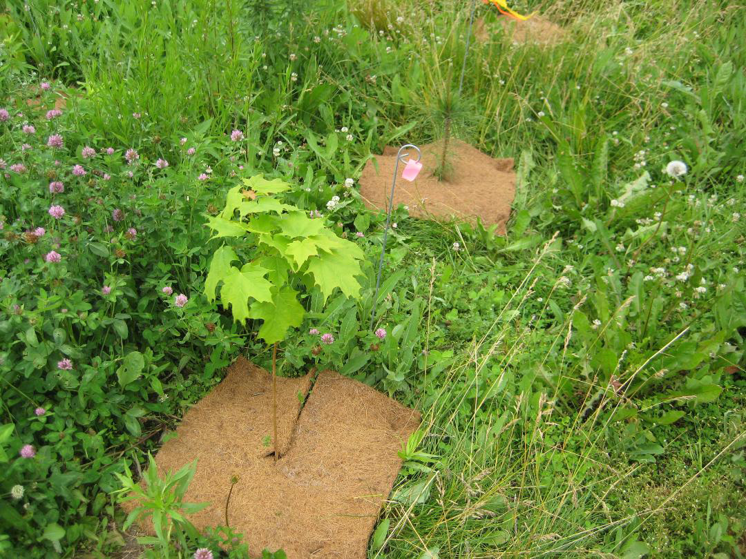 Dans le second volet de la thèse, nous avons analysé l’effet de microorganismes de sol forestier sur des arbres plantés en champ. De récentes études suggèrent qu’il est important de restaurer les communautés microbiennes sur les terrains perturbés. Plusieurs microorganismes tels que les mycorhizes facilitent la croissance des plantes et des arbres, mais certaines espèces ne sont pas présentes dans les milieux à restaurer. Nous avons ajouté autour de jeunes arbres plantés en champ de petites quantités de sol forestier afin de voir s’il y avait un effet sur la croissance des arbres.